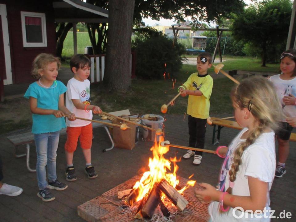 Hier entdeckten sie eine riesige Schatztruhe, in der sich für jedes Kind ein kleines Schatzkästchen mit verschiedenen Kostbarkeiten befand. Als die Dämmerung einsetzte wurde ein Lagerfeuer geschürt. Viel Spaß hatten die Kinder auch beim Herumgeistern im Garten mit ihren Taschenlampen. Als es Zeit zu gehen war, wollte mancher Pirat gar nicht mehr nach Hause. Doch als das Lagerfeuer heruntergebrannt war, kam auch die Müdigkeit und die Kinder machten sich mit ihren gefundenen Schätzen auf den Heimweg.