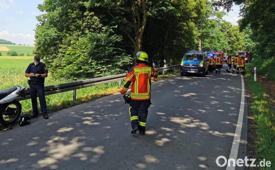 Dieser zog sich nach ersten Erkenntnissen zum Glück nur leichtere Verletzungen zu. Nach dem Notrufeingang alarmierte die Integrierte Leitstelle Nordoberpfalz die Feuerwehren Löschwitz und Kemnath sowie den Rettungsdienst. Einsatzkräfte der Feuerwehr Kemnath kümmerten sich um die Erstversorgung des verunfallten Leichtkraftradfahrers. Die weitere Behandlung übernahmen die Kräfte des Rettungsdienstes sowie eine Notärztin. Ebenfalls angerückt war der Helfer vor Ort Immenreuth, der nicht eingreifen brauchte. Der junge Motorradfahrer kam zur weiteren Untersuchung in ein Krankenhaus.
