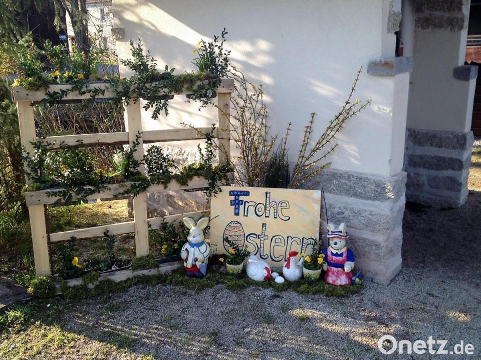 Etwas Normalität in Zeiten der Corona-Krise in Kuchenreuth: Beim Backofen in der Ortsmitte ist für einen blumig-tierischen Ostergruß gesorgt. Frische Pflanzen und bunte Osterhasen erinnern daran, dass in wenigen Wochen das wichtigste christliche Fest gefeiert wird. Für die Dekoration verantwortlich waren Mariele Schönberger und Gerlinde Rodler, die zwar gemeinsam, aber doch Corona-konform für den Schmuck sorgten: Erst werkelte die eine Kuchenreutherin, eine halbe Stunde später beendete die andere Bewohnerin des Dorfes das Projekt.