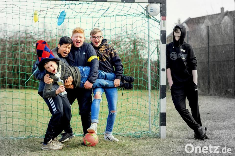 Zum Thema Freunde entschieden sich die Achtklässler für den Titel "Freunde lassen einen nicht im Regen stehen". Im Verein und im Sport bewundern Jugendliche jene, die Erfolge gönnen können, nicht neidisch sind und sich für andere mitfreuen, deshalb der Name "die feiernden Sportler". Die Gruppe zum Thema Familie sieht in großen Geschwistern ihre Beschützer, die Verantwortung übernehmen, und nennen ihr Bild "Mein Bruder - Mein Held".