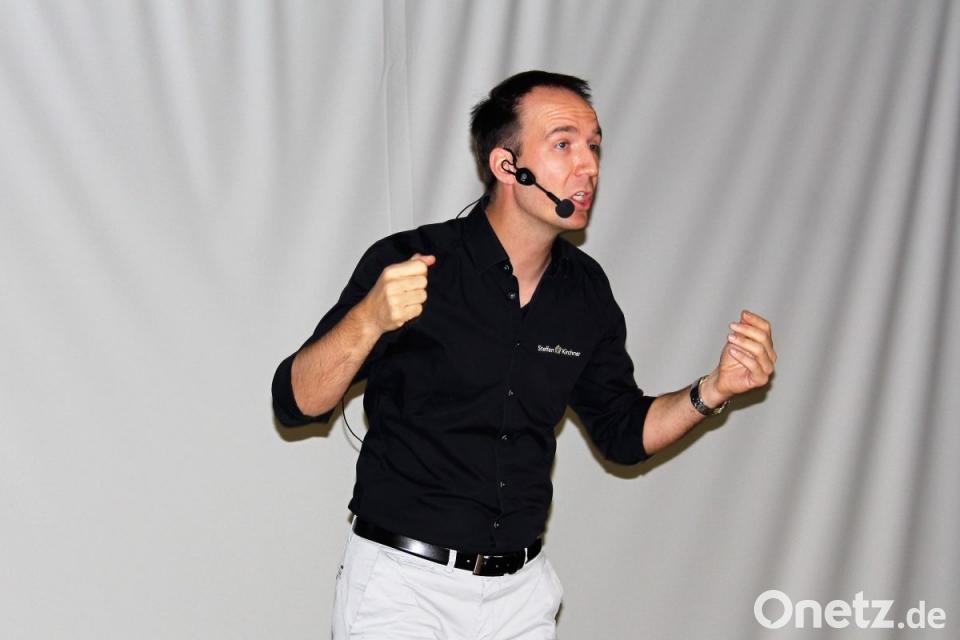 Über den Erhalt von Motivation spricht Hauptreferent Steffen Kirchner. Er trainiert unter anderem die Denkweise von Spitzensportlern und Kräfte im Wirtschaftswesen. Mit Anekdoten aus seinem Leben versucht der Motivationstrainer zu verdeutlichen, welche unterschiedlichen Ziele Kinder und Erwachsene verfolgen. Motivation an sich sei nur ein kleiner Baustein aller Rahmenbedingungen für Erfolg. Jeder habe Zahlen, an denen er sich orientiert. Leistungssportler, Banker und eben auch Lehrer oder Schüler, die sich an Noten messen. Für Erwachsene sei das Ergebnis das Wichtigste. Kinder hingegen seien nur am Erlebnis interessiert. „Wenn man das Erlebnis optimiert – und das hat etwas mit Führung und Erziehung zu tun - dann stimmen meist auch die Ergebnisse“, davon ist Kirchner überzeugt. Schlechte Leistung sei das nötige Feedback um zu erkennen, dass die Rahmenbedingungen nicht stimmen.