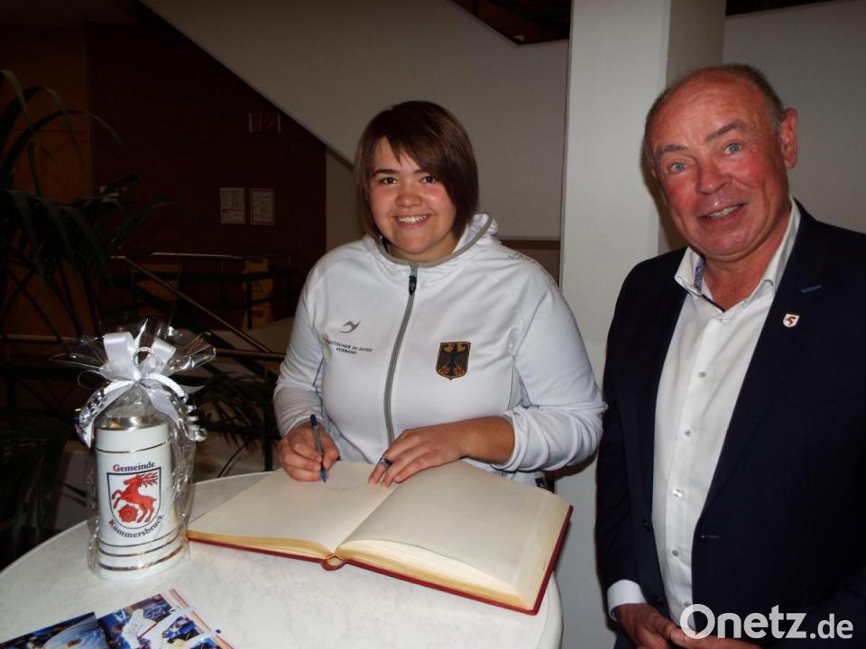 Ehre wem Ehre gebührt: Die Gemeinde Kümmersbruck lud Viola Fritsche mit ihrer Familie ins Rathaus ein. Die 18-Jährige studiert gerade im ersten Semester Jura. Bürgermeister Roland Strehl blickte bei dem Empfang zusammen mit Gemeinderatsmitgliedern auf die außergewöhnlich erfolgreiche Laufbahn der Vorzeigesportlerin zurück, die im Jahr 2012 begann, im Alter von sieben Jahren: Erster Wettkampf 2014, ab 2016 Mitglied des Landeskaders Bayern, seit 2020 in der deutschen Nationalmannschaft des Ju-Jutsu-Verbandes. Mit der Karriere ging es steil bergauf: Im Kampf Frau gegen Frau war sie 2019 schon Vize-Europameisterin, 2022 Jugendeuropameisterschaft (3. Platz in Griechenland), 3. Platz bei den Paris Open 2023 bei den Erwachsenen, Siegerin bei den German Open der Erwachsenen, zweifache Junioren-Europameisterin (2021 in Deutschland, 2023 in Frankreich) und schließlich als absolute Krönung zweifache Juniorenweltmeisterin. Solch große Erfolge verlangen absolute Disziplin, viel Training, hohe Konzentration, Fitness auf die Sekunde, starke Nerven und eine Familie, die das große Talent der Tochter unterstützt, wie Viola Fritsche besonders hervorhob.