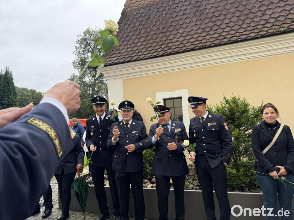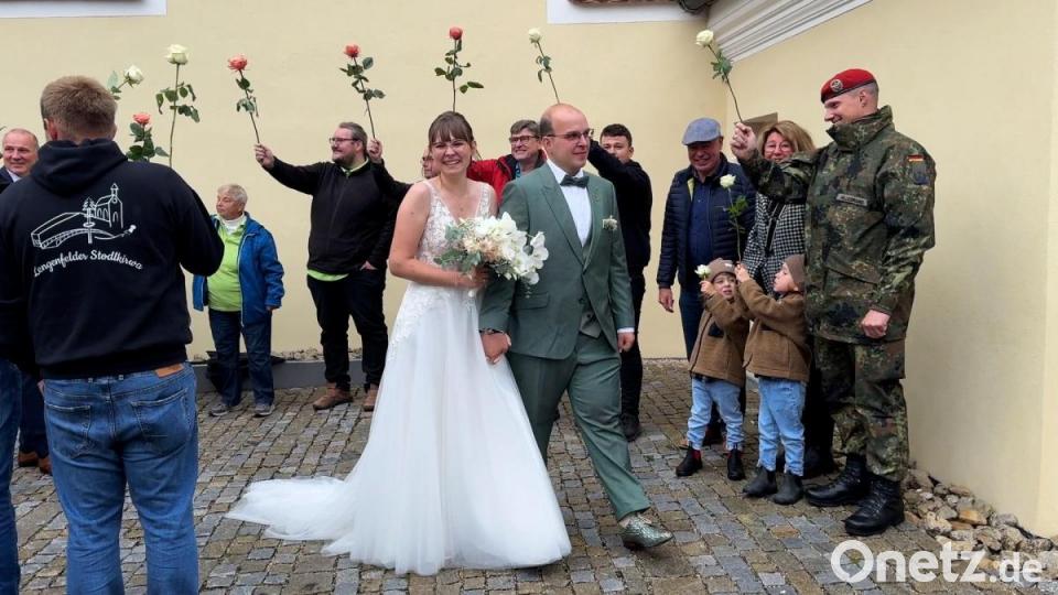 Zu den Gratulanten gehörten neben Familie, Freunden und Feuerwehr auch Vertreter verschiedener Vereine wie Narrhalla Haselmühl, Stopselclub und Dorfgemeinschaft Lengenfeld sowie der Chef der Braut, Kümmersbrucks Bürgermeister Roland Strehl. Besonders freute sich die Braut darüber, dass sich sogar der Kümmersbrucker Bundeswehr-Kommandeur Martin Hillebrand, mit dem sie dienstlich öfter zu tun hat, ins Ehrenspalier einreihte.