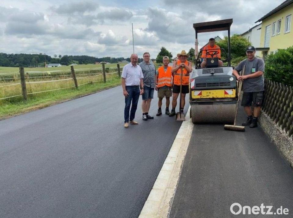 Vor Ort informierte der gemeindliche Bautechniker Michael Pollok über die durchgeführten Sanierungsarbeiten. Demnach sind auf einer Länge von etwa 320 Metern die Bordsteine und die wasserführende Zeile aus Granitgroßstein-Pflastersteinen neu aufgebaut worden. Außerdem wurden insgesamt 1800 Quadratmeter Asphalt erneuert, wegen des Granulat-Altbestands im Unterbau zum Teil mit einem Asphaltarmierungsgewebe. Zwei öffentliche Parkplätze wurden in diesem Zuge gleich mit ausgebessert. Die Kosten der Maßnahme beliefen sich auf etwa 165 000 Euro.