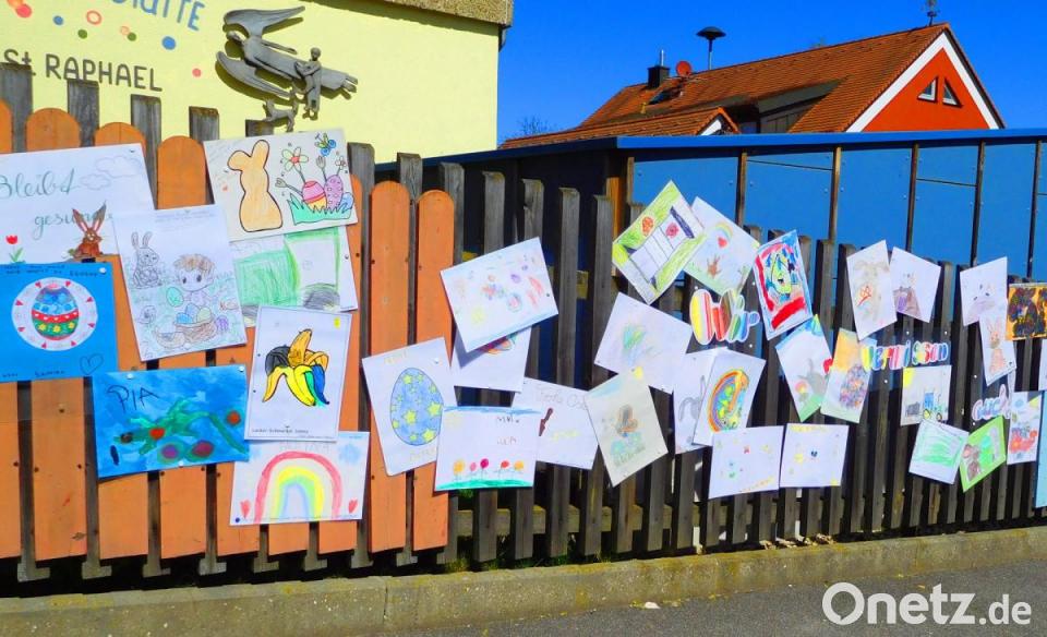 Corona macht erfinderisch: Weil sie ihren Kindergarten doch ganz arg vermissen, nicht miteinander reden und spielen können, haben die Kinder von St. Raphael in der Köferinger Straße in Kümmersbruck eine andere Möglichkeit gefunden, um das auszudrücken. Auf Plakaten drückten sie ihre Sehnsucht nach der Einrichtung aus. „Es zeigt sich, dass die Kinder trotz Zwangspause eine enge Verbindung zu ihrem Kindergarten haben“ , sagte Erzieherin Kerstin Bamler. Die Kunstwerke wurden alle an den Zaun geheftet. „Wir vermissen euch“, „bleibt gesund und munter" und „wir sehen uns bald wieder“ steht da zum Beispiel zu lesen. „Das geht uns ganz genau so. Wir vermissen unsere Kinder auch sehr", bedauerte Kerstin Bamler die momentane Lage. Seit 13. März hat der Kindergarten St. Raphael nun schon geschlossen. „Wir sind sehr froh, dass in dieser Woche schon ein paar Kinder zur Betreuung da waren“, sagte Bamler.