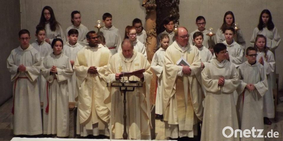 Stimmgewaltig, musisch von den Streichern und Bläsern begleitet, mit ausgewählten Musikern des Max-Reger-Gymnasiums, hatte Chorleiterin Susanne Müssig-Wilczek die besonders festliche Pastoralmesse von Karl Kemtner ausgewählt, der am 17.1. seinen 200. Geburtstag feiern könnte. An der Orgel begleitete Sebastian Brandl aus Sulzbach-Rosenberg den Gottesdienst und Chor. Herausragend die Soli von Elisabeth Schöx (Sopran), Reinhold Sulzmeier (Bass), Joachim Scheibel (Tenor) , während die Chorleiterin selbst den Alt-Part übernommen hatte. Bei Susanne Müssig-Wilczek liefen alle kirchenmusikalischen Fäden zusammen. Eindrucksvoll war die Predigt vom Generalabt, in der er ermutigende Worte für die Kirchengemeinde fand. "Festlich haben wir die Weihnachtszeit ausklingen lassen, sie soll noch nachklingen, denn wenn wir von der Krippe weg in unseren Alltag gehen ,dann sind wir gut gerüstet", gab Pfarrer Wolfgang Bauer den Gläubigen mit auf dem Weg. Nicht nur den Chören und Musikern sagte Pfarrer Wolfgang Bauer Dank, der galt auch den Firmlingen aus den Firmjahrgängen 2015, 2016 und 2018, exakt waren es 174, die Pater Thomas Handgrätinger in St. Wolfgang gefirmt hatte. Viele Firmlinge hatten mit ihrem Firmspender Pater Thomas Handgrätinger die Messe mitgefeiert, danach bestand für alle im Pfarrsaal Gelegenheit, sich mit dem emeritierten Abt und Firmspender ganz zwanglos zu unterhalten.