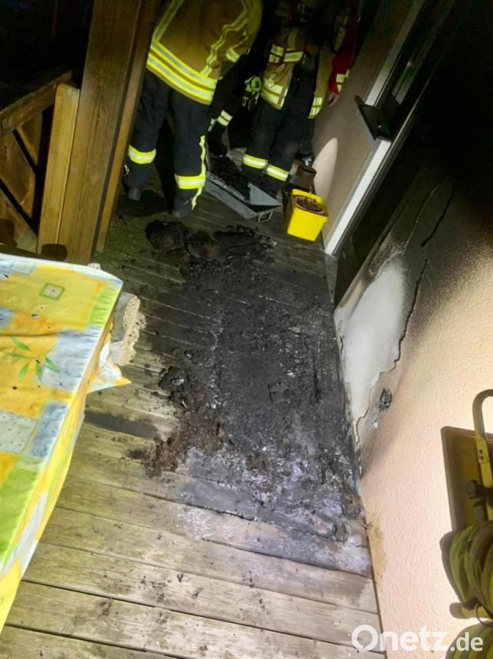 Zum Glück stellte sich den Feuerwehren aus Kürmreuth und Königstein die Lage dann glimpflicher dar als sie sich ursprünglich angehört hatte. Auf einem Balkon des Dorfgasthauses war es zu einem Schwelbrand gekommen, der von Anwohnern bemerkt und gemeldet wurde. Die Wirtsfamilie brachte ihn mit Feuerlöschern und Wassereimern selbst unter Kontrolle. Vorsichtshalber schauten sich die Feuerwehrleute das Ganze mit der Wärmebildkamera noch einmal an und trugen glühenden Brandschutt ab. Als Ursache wird ein Defekt an einer Steckdose vermutet.
