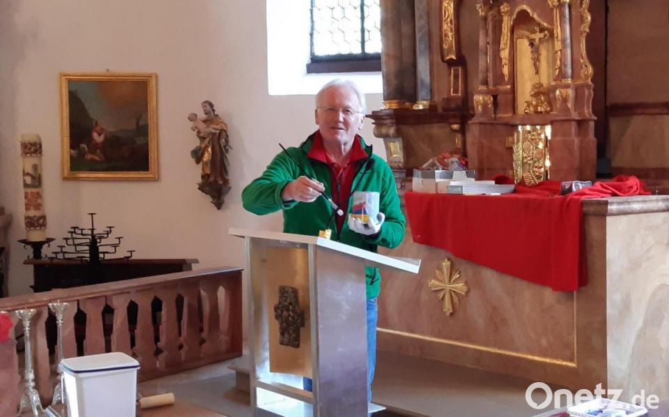 Die drei Männer haben auch die zwei Lüftungsgitter in der Kirchendecke mit Sichtblenden versehen. Der Restaurator Karl Jobst aus Hemau hat diese Blenden farblich an die Deckenfarbe angepasst und kleinere Schäden an Bildern, am Ambo und am Altar behoben. Jobst war schon vor nun genau 20 Jahren für die damalige Generalrestaurierung des Kircheninneren verantwortlich und hat seit damals eine emotional enge Verbindung zum Armesberg mit der Kirche. Der Kulmainer Pfarrer Markus Bruckner und Kirchenpfleger Albert Sollfrank sind froh und dankbar, dass die bauliche Substanz der Armesbergkirche und deren Umfeld dank der Handwerskunst von Karl Jobst sowie dank des unermüdlichen Einsatzes von Ehrenamtlichen wie Franz Griener und seiner Helfer in einem hervorragenden Zustand sind. Jetzt gilt es abzuwarten und zu hoffen, dass bald wieder Gottesdienste „auf dem Berg“ möglich werden.