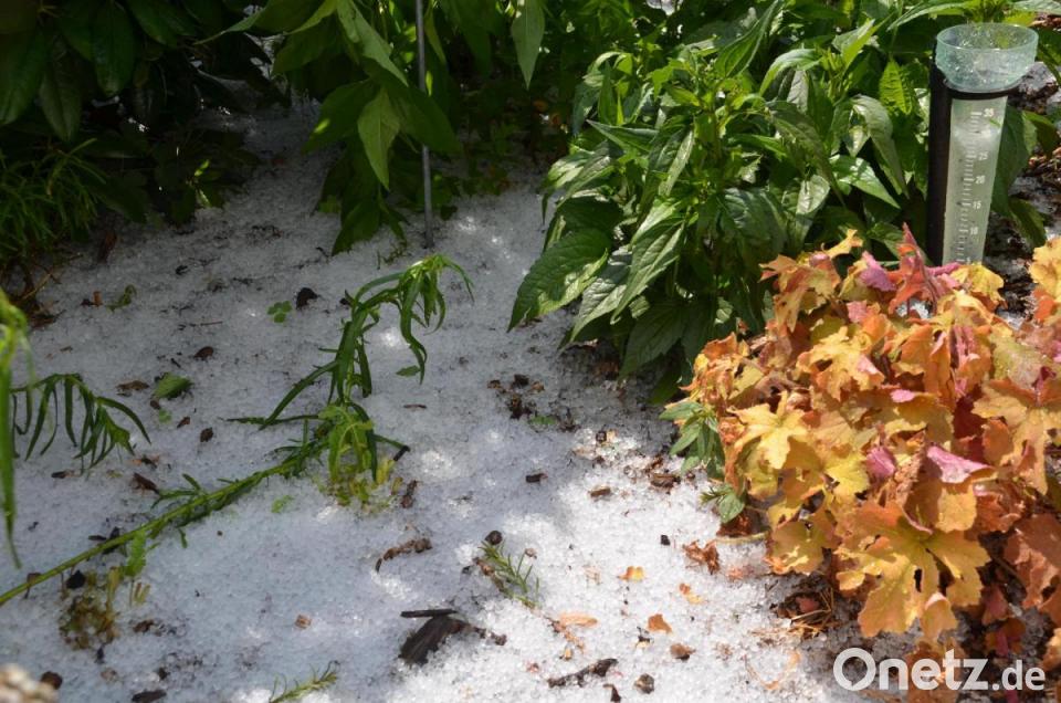 Die tiefhängende Gewitterfront schaffte es nicht über den Armesberg und prallte über Kulmain mit den nachströmenden Luft- und Regenmassen zusammen. Regengüsse und Hagelschauer mit einer Kornstärke von rund einem Zentimeter prasselten eine Dreiviertelstunde nieder und überdeckten die Erde mit einer bis zu zwei Zentimeter hohen Hagelschicht.