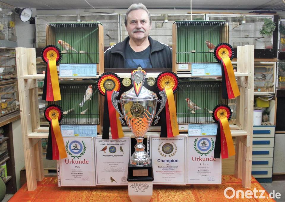 Man hat den Eindruck, dass er fast schon ein Abo drauf hat: Zum wiederholten Male hat sich Konrad Dötterl mit seinen Tieren bei der Deutschen Meisterschaft des Deutschen Kanarien- und Vogelzüchter-Bundes durchgesetzt. In diesem Jahr gab es bei der größten Vogel-Ausstellung Deutschlands in Bad Salzuflen mit über 650 Ausstellern und rund 8000 Vögeln eine Premiere für den 65-Jährigen: Denn zum ersten Mal sicherte sich der Kulmainer den Titel "Champion-Kollektion".