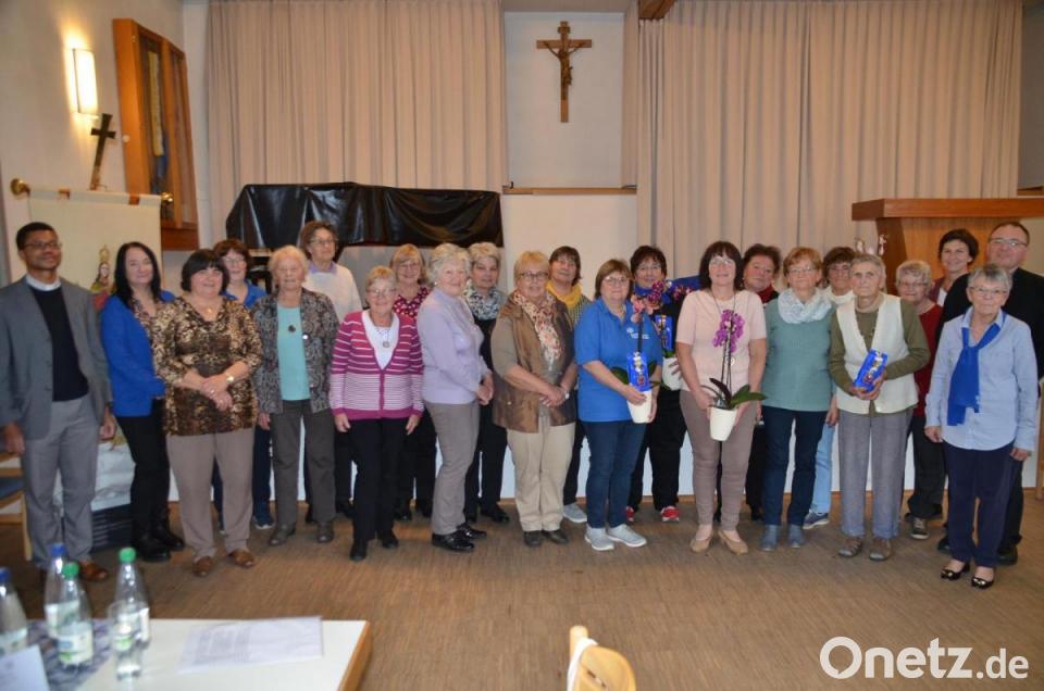 Nach Rinderbraten mit Klößen, Salat und Blaukraut erklärte Irene Schmidt als Sprecherin des Führungsteams: "Im 45. Jahr des Bestehens unseres Zweigvereins wollen wir heute langjährige und verdiente Mitglieder ehren. Der Verein lebt für und mit seinen Mitgliedern, die Bereitschaft sich für den Verein, seine Ziele und Interessen einzusetzen und Solidarität zu beweisen." Das Ehrenamt setze Werte wie Gemeinschaftssinn, Verantwortungs- und Pflichtbewusstsein voraus, die für das Zusammenleben unerlässlich seien. Stellvertretende Diözesanvorsitzende Rita Kleierl dankte dem Zweigverein für sein vielfältiges Engagement. "Euer Zweigverein ist eine feste Größe in der Pfarrei, dem Bezirk und dem Diözesanverband. Hier findet Leben aus und mit dem Glauben statt. Er gibt uns Kraft, Halt und Zuversicht. Gemeinsam wollen wir diese Kirche mitgestalten, damit auch unsere Nachkommen hier noch Heimat finden."