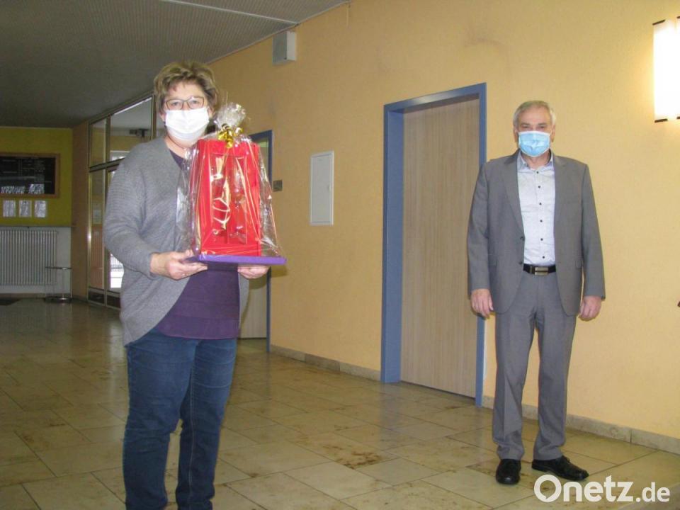 Bürgermeister Günter Kopp würdigte die Verdienste der Mitarbeiterin im Namen des Sachaufwandsträgers: "Du hast die Entwicklungsstufen mit den Schulreformen unserer früheren Hauptschule hautnah miterlebt. Zeitweise wurden über 300 Schülerinnen und Schüler in den Klassen- und Fachräumen unterrichtet." Die Begleitung und Betreuung sowie die Schaffung ordentlicher und hygienischer Verhältnisse in den Klassenräumen und im Schulhaus seien große Herausforderungen, denen sich die Jubilarin mit "Beherztheit und großem Bestreben stets zur vollsten Zufriedenheit" gestellt habe. Bayer habe sich viele Jahre mit ihrem Mann Ludwig um die Geschicke der Schule gekümmert.