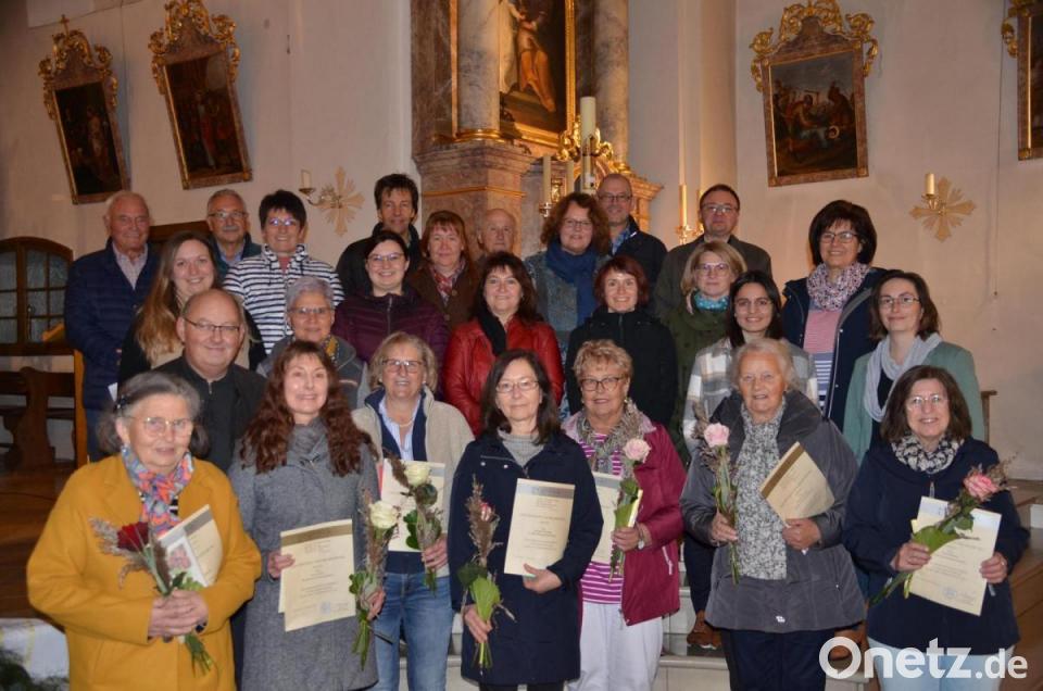 Die bischöflichen Urkunde in Gold erhielten Irmgard Most, Christine Spörrer und Gabi Scharf, alle Sopran, Hedwig Bäuml (Alt) wie Siegfried Vetter als Bassist und Organist für jeweils 40 Jahre. Für alle Geehrten gab je eine Urkunde sowie eine Rose und ein Geschenk als Dankeschön.