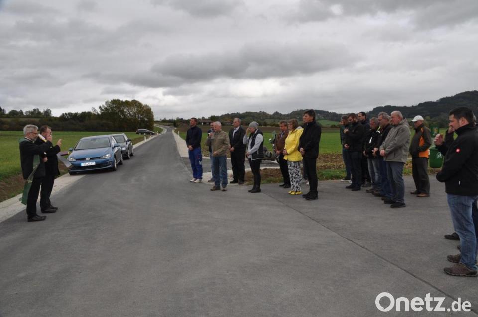 Im Rahmen der offiziellen Verkehrsfreigabe mit ökumenischer Segnung nahm die politische Gemeinde die neu gebaute Wegeverbindung zwischen Kulmain und Zinst in Betrieb. Am Freitagnachmittag hieß Bürgermeister Günter Kopp die Geistlichen Dirk Grafe und Markus Bruckner, die beiden Vertreter der ausführenden Baufirma VSTR aus dem vogtländischen Rodewisch, die Bauingenieure Albert Vollath und Christoph Reger vom Ingenieurbüro für Tiefbautechnik aus Marktredwitz, zweiten Bürgermeister Albert Sollfrank, Altbürgermeister Hans-Gerd Reindl, die Gemeinderäte, Mitarbeiter des Bauhofes sowie Bürger und Anlieger am Einfahrtsbereich des Heim des Schäferhundevereins willkommen. In einem kurzen Rückblick ließ er den Bauverlauf mit der Baustelleneinrichtung Ende März bis zur Fertigstellung in dieser Woche Revue passieren.