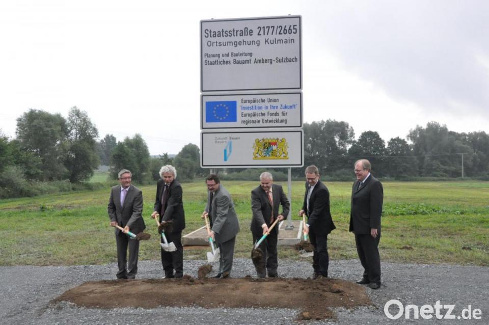 „Nach gemeinsamen Anstrengungen ist es heute nun soweit, dass wir mit dem feierlichen Spatenstich den offiziellen Startschuss für die Ortsumgehung Kulmain geben können. Grund zur Freude haben vor allem die Kulmainer Bürger, die künftig weniger als bisher durch Lärm und Abgase belästigt werden“, erklärte damals Gläser. Das Straßenbauprojekt wurde aus Mitteln des Freistaates und der Europäischen Union finanziert. Damit flossen Steuergelder zum Wohl der Bürger und Stärkung der heimischen Infrastruktur zurück. Die beiden Brückenbauvorhaben erledigten die zwei Oberpfälzer Firmen HSG Zander aus Grafenwöhr und Rodinger Ingenieurbau GmbH, den Straßenbau die Baufirma Rädlinger. Der Dank galt der Gemeinde und den Behördenmitarbeitern für die gute vorbereitende Arbeit. Großes Lob zollte man den Grundstücksbesitzern, die ohne gerichtliche Auseinandersetzungen ihre Grundstücke veräußerten oder tauschten.