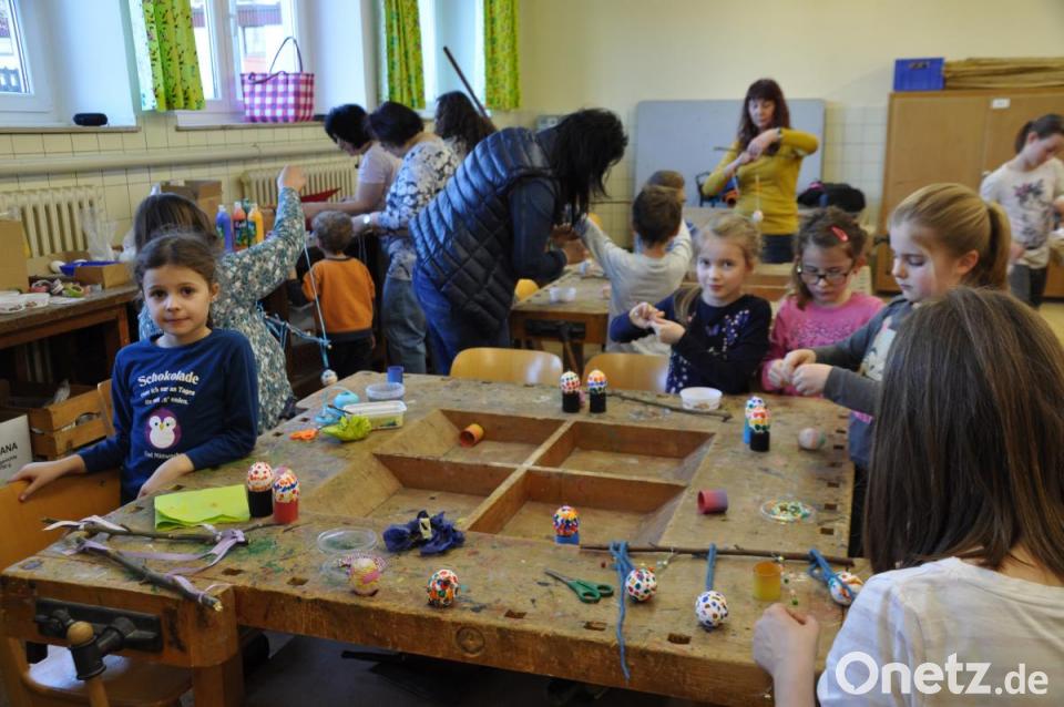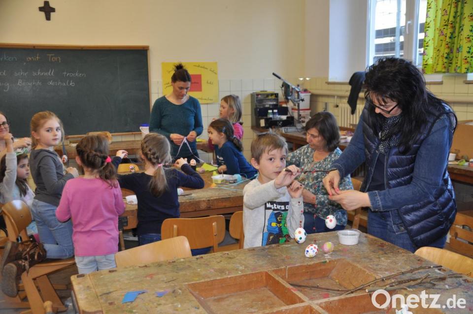 Ein Herz und Interesse für selbst hergestellten Osterschmuck fürs eigene Kinderzimmer zeigten 15 Mädchen und Buben beim Basteltag der Bücherei. Nachdem die Kinder in den Jahren zuvor bereits gemeinsam bunte Vogeltränken und Nistkästen für heimische Singvögel sowie Gartenschmuck gefertigt hatten, ging's jetzt an den Osterschmuck für drinnen. Unter Anleitung des Büchereiteams, unterstützt von Müttern und Omis, entstanden Schmuckartikel zum Aufhängen für Tisch, Sideboard und Fensterbank. Als Grundlage dienten Holzzweige, Plastikeier, Farbpapier, Malfarben, Perlen und Schnüre. Die Teilnehmer bemalten oder beklebten die Eier und befestigten sie mit Schnüren an den Zweigen. Es entstanden bunte Osterhasen aus Papier und Eierbecher.