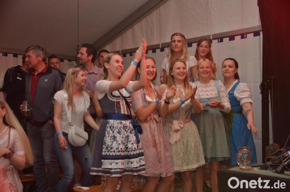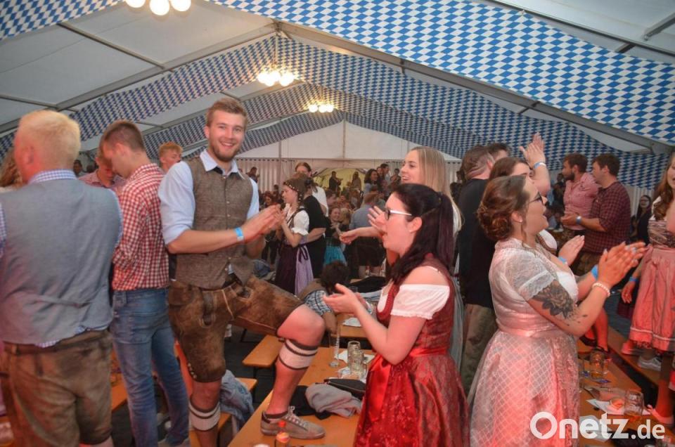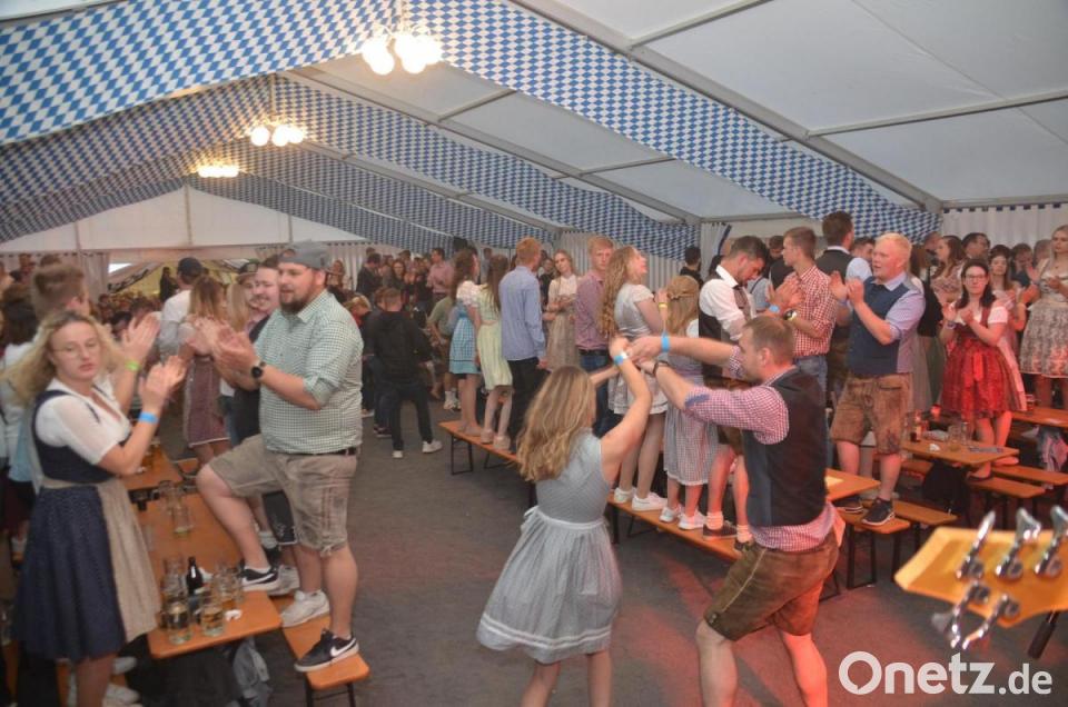 Das Zeltfest des SV Kulmain startete am Samstag zum 95. Vereinsjubiläum unter dem Motto "A Festl wai fraia". Mit dem ersten Lied "Fliege mit mir in die Heimat" erklommen viele junge Gäste in Tracht bereits die Bänke und feierten ausgelassen nach über zwei Jahren Partyabstinenz. Als Stimmungskracher erwies sich die Party- und Stimmungsband "Lederhosen-Lackl" aus Haidenaab. Ab 20 Uhr war das Partyzelt rappelvoll, minütlich stieg die ausgelassene Partylaune. Das Service-Personal des SV Kulmain hatte bis in die Morgenstunden Schwerstarbeit zu verrichten, um Getränke, Essen und vieles mehr zu servieren.