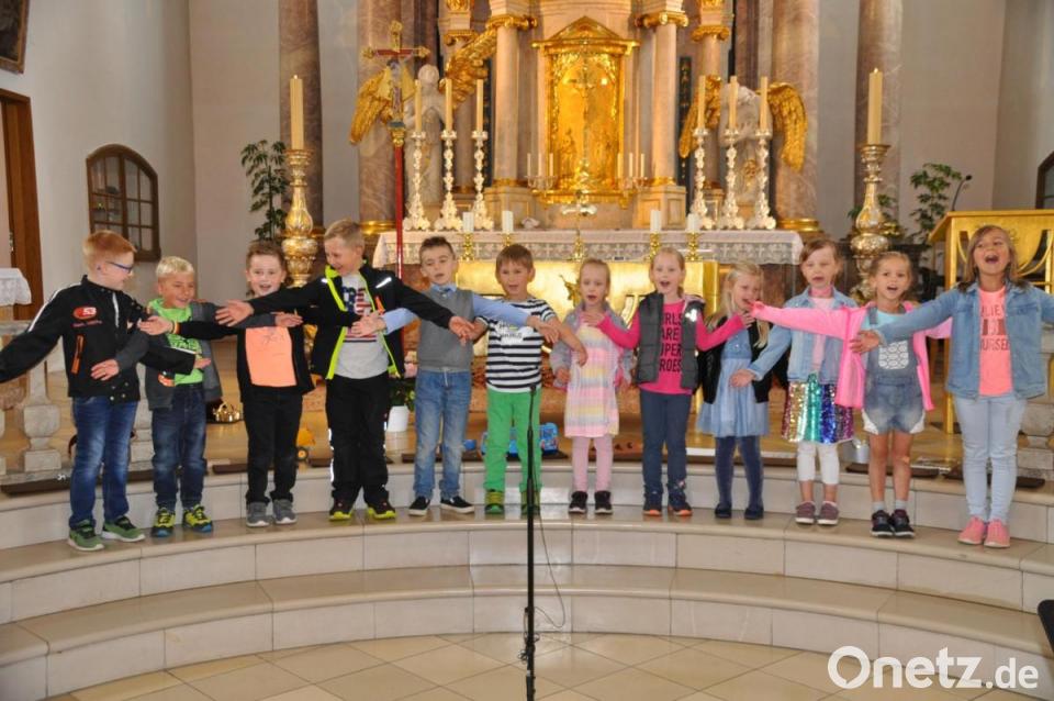 Mit einem Sommerfest und vorausgegangener Andacht verabschiedete das Kinderhaus Mobile die Vorschulkinder in ihren neuen Lebensabschnitt Grundschule. Zusammen mit ihren Erzieherinnen zogen die Kindergartenkinder am Sonntagnachmittag in die gut besuchte Pfarrkirche zur Andacht mit Pfarrer Markus Bruckner ein. Mit den Worten "Es ist heute ein besonderer Tag für Euch. Der dreifaltige Gott wird Euch auf dem Lebensweg begleiten" begrüßte er sie.