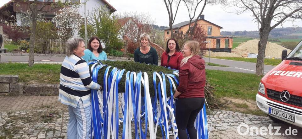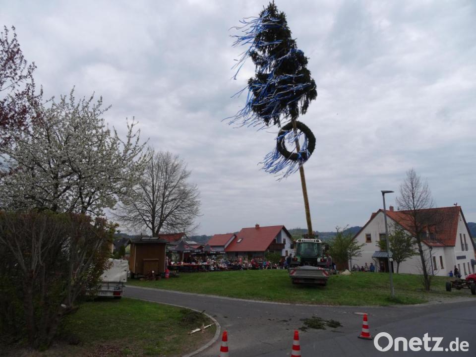 Am Sonntagnachmittag hievten Bauhof und Feuerwehr den frisch geschlagenen Maibaum auf dem Übungsplatz am Gerätehaus Kulmain in seine Grube. Eine große Anzahl von Bürgern folgte der Einladung der Wehr und ließ sich im Freien zur Maifeier nieder.