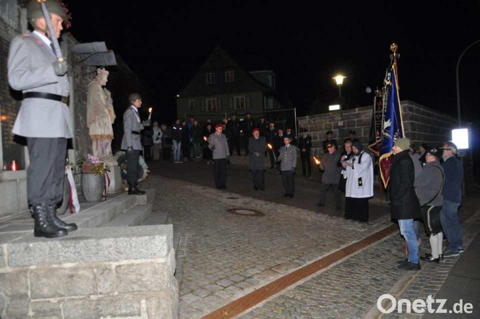 Der Opfer von Kriegen und Gewaltakten gedachte die Gemeinde zum Volkstrauertag am Samstagabend mit einer würdigen Gedenkfeier. Nach der von Pfarrer Markus Bruckner zelebrierten Vorabendmesse versammelten sich Bürger, Vereins- und Fahnenabordnungen vor dem Kriegerdenkmal, um an die durch Kriege, Gewalt und Terror gestorbenen Mitbürger zu erinnern. Der Sängerbund unter Leitung von Andrea Krauß begleitete gesanglich die Messe und eröffnete die Gedenkfeier mit dem Stück "Wenn Christus der Herr zum Menschen sich macht".