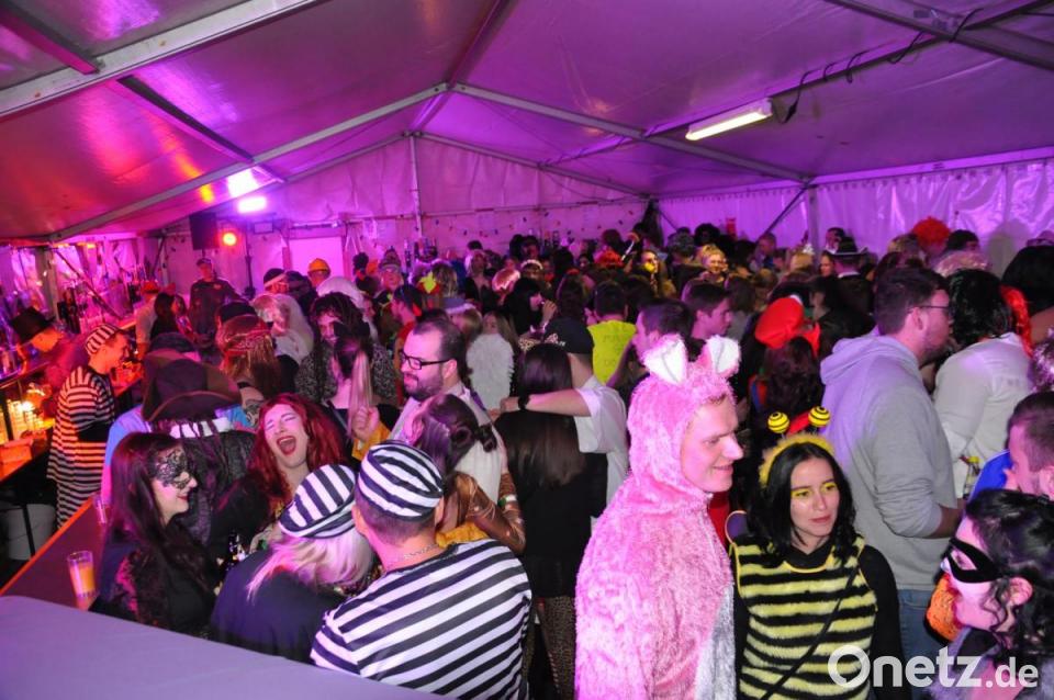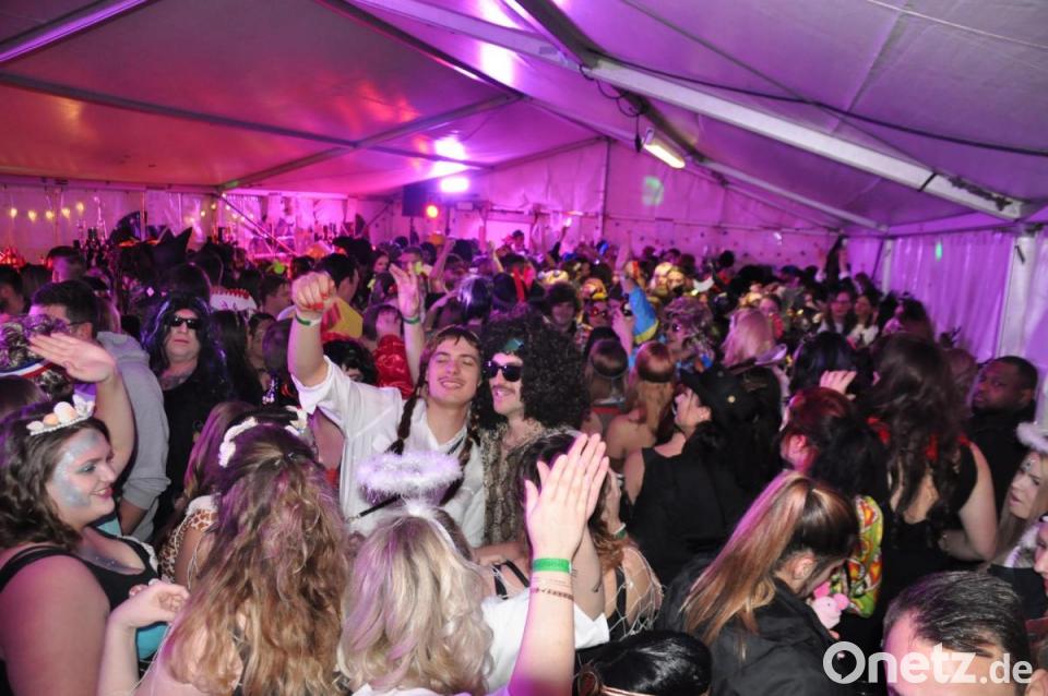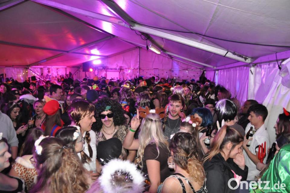 Bereits am Mittwoch begannen der Aufbau und die Ausstattung der drei Partyzelte. Die Veranstaltungsflächen waren um den Mehrzweckraum im Obergeschoss erweitert worden, und das war absolut notwendig. Ab 21 Uhr strömten die närrische Weiberwelt und solche, die vorgaben dazuzugehören, in die kleine Zeltstadt. Proppenvoll waren die drei beheizten Partyzelte, Gleiches galt für den Mehrzweckraum, wohin sich die "ruhigeren Weiberleit" einfanden.