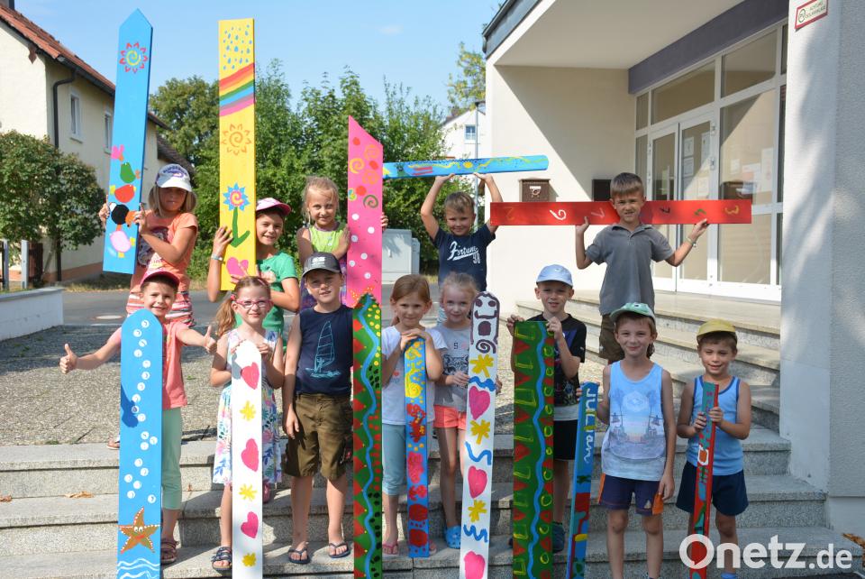 Werkstoffe des Basteltages waren Zaunlatten, Farben und die Sonne. Für das Motiv für die Bemalung der jeweils zwei Zaunlatten stand die eigene Fantasie Pate. Zunächst grundierten die Kinder das Holz und ließen es in der gleißenden Nachmittagssonne trocknen. Dann folgte die individuelle Bemalung. Blumen, Tiere und abstrakt-farbige Kunstwerke entstanden, wobei das Büchereiteam bei der Gestaltung mithalf. In den Pausen unterhielten sich die Teilnehmer mit Spielen und stärkten sich mit Obst, Keksen, Wassermelone, Säften und Mineralwasser.