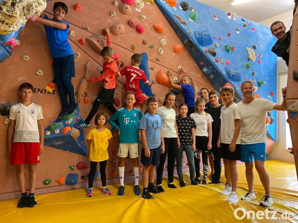 Den angemeldeten Kindern aus der Gemeinde sollte ein schöner und aktiver Ferientag angeboten werden. Die SV-Übungsleiter entschieden sich für Bouldern. „Das ist Klettern in Absprunghöhe“, erklären die Verantwortlichen. Beim Bouldern wird ohne Seilsicherung an künstlichen Wänden mit Plastikgriffen oder in der Natur an echtem Felsen geklettert. Die Kletterhalle ist mit Matten ausgelegt, so dass auch ein ungeplanter „Abstieg“ keine große Folgen hat.