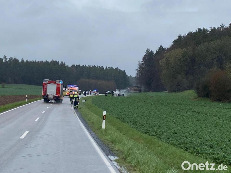 Die junge Frau konnte sich trotz starker Rückenschmerzen selbst aus dem Wrack befreien – zu ihrem großen Glück. Denn kurz darauf ging der Pkw komplett in Flammen auf. Die Feuerwehren aus Sulzbach-Rosenberg, Neukirchen und Holnstein-Mittelreinbach konnten den Brand – ausgerüstet mit schwerem Atemschutz – schnell löschen. Ein vollständiges Ausbrennen des Fahrzeuges wurde so verhindert.