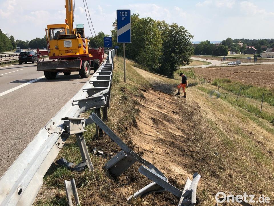 Kurz vor 6 Uhr Freitagmorgen kam es auf der A3 auf Höhe der Anschlussstelle Laaber zu einem Verkehrsunfall. Ein Lastwagen, der von Nürnberg in Richtung Passau unterwegs war, verlor aus bislang unbekannten Gründen die Kontrolle. Er durchbrach die Leitplanke auf der rechten Seite, schoss einen rund 8 bis10 Meter tiefen Abhang hinunter und blieb schlussendlich 150 Meter weiter auf einem bereits abgeernteten Feld stehen. Hierbei kippte sein Anhängergespann um. Die Freiwilligen Feuerwehren aus Laaber, Oberpfrauendorf und Beratzhausen wurden an die Unfallstelle alarmiert. Vor Ort pumpten die Einsatzkräfte den restlichen Diesel aus den Tanks, da diese bei der Schleuderpartie aufgerissen wurden. Die Verkehrspolizei Parsberg übernahm die Unfallaufnahme vor Ort. Der Fahrer blieb unverletzt.