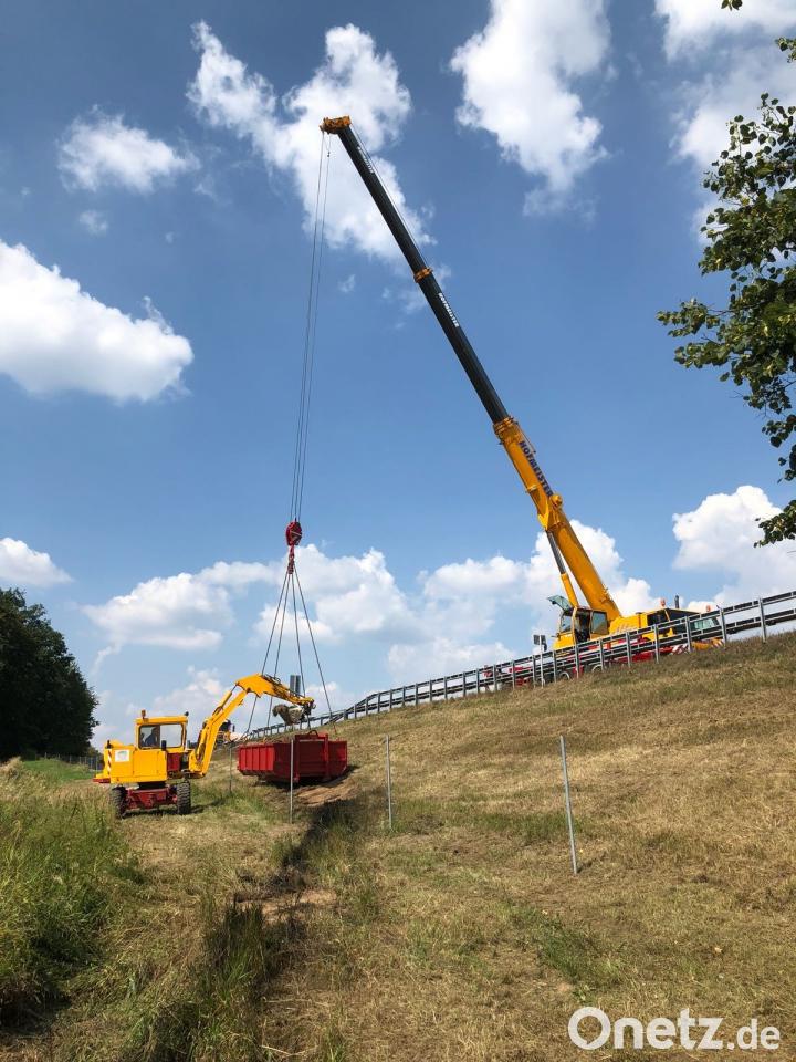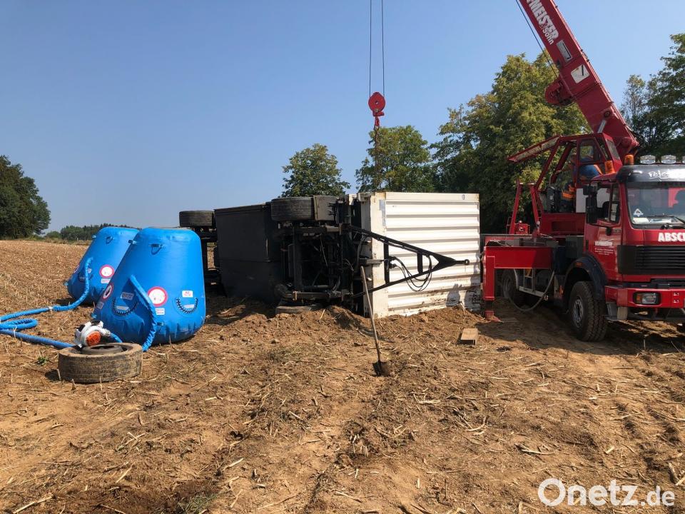 Eine Spezialfirma wurde an die Örtlichkeit alarmiert, um den Laster samt umgekippten Anhänger zu bergen. Die Bergungsarbeiten sind zwar abgeschlossen, allerdings muss noch auf einige Metern das Erdreich abgetragen werden. Durch den aufgerissenen Dieseltank verteilten sich einige Liter des Treibstoffes auf den zurückgelegten 150 Metern durch Wiese und Feld.