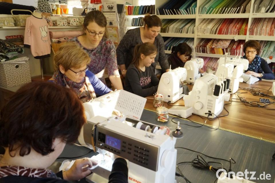 Federlein und Nina Bickel standen den Damen zur Seite. Einige Teilnehmerinnen hatten beispielsweise noch nie mit Jersey-Stoff gearbeitet. Es galt das Schnittmuster zu kleben, auszuschneiden und aufzulegen. Die Unterweisung erfolgte an der Nähmaschine und am Overlock. Hier wird der Stoff in einem Arbeitsgang zusammen genäht, sauber und präzise abgeschnitten. "Das ist zeitsparend und ermöglicht das schnelle Erstellen von professionellen Nähten", erfuhren die Näh-Schüler. Als erstes fertigten die Frauen eine Beanie-Mütze und als zweites einen Loop-Schal.