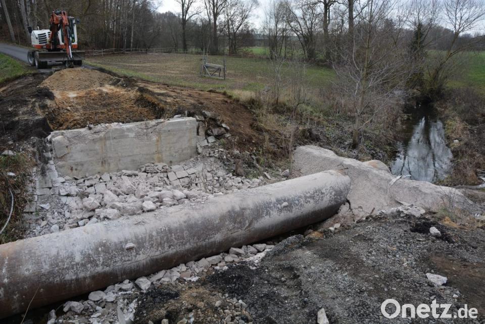 Kurzen Prozess machten jetzt Baumaschinen mit der Brücke über den Seibertsbach in Kriegermühle. Aufgrund von Schäden, nicht mehr ausreichender Tragfähigkeit und der zu schmalen Fahrbahn hatte sich der Leonberger Gemeinderat gegen eine Instandsetzung und für einen Ersatzneubau entschieden. Das Bauwerk aus dem Jahr 1970 war einst mit einer Tragfähigkeit von bis zu 16 Tonnen errichtet worden. Inzwischen kommen aber viel schwerere landwirtschaftliche Gespanne zum Einsatz. Bis zu 40 Tonnen können diese wiegen, wie Bürgermeister Johann Burger kürzlich im Gemeinderat betonte. Die Stützweite der neuen Brücke wird 7,74 Meter betragen, die lichte Weite 7 Meter. Künftig wird eine Fahrbahnbreite von 5,55 Metern zur Verfügung. Bis Mai 2019 sollen alle Maßnahmen abgeschlossen sein. An Kosten fallen rund 700.000 Euro an, wobei der Freistaat Bayern einen Fördersatz von 80 Prozent gewährt. Während der Bauzeit wird der Verkehr über eine Behelfsbrücke umgeleitet. Für größere Fahrzeuge ist diese aber tabu, sie können die Kriegermühle nur von Hofteich her ansteuern.