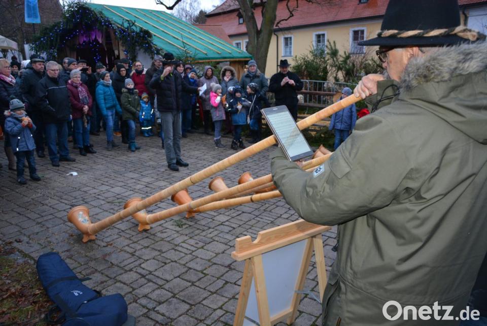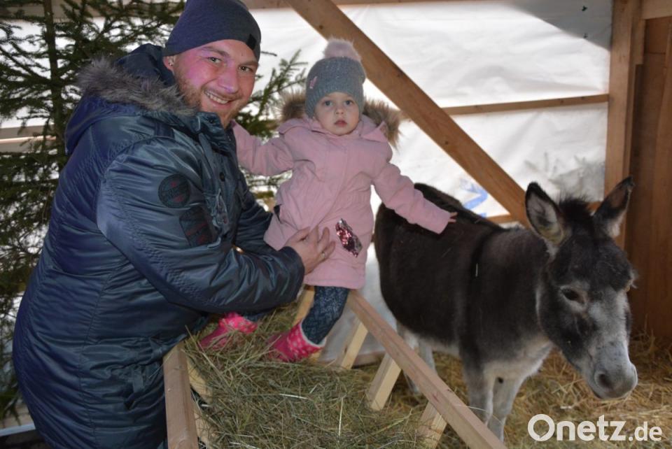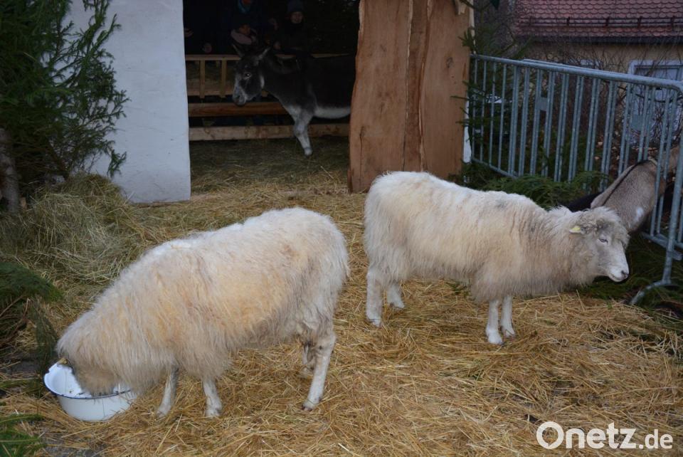 Blickfang vor allem für die kleinen Besucher war am Sonntag die "lebendige Krippe". Zwei Ziegen, zwei Schafe und ein Esel durften dort auch gestreichelt werden. Bürgermeister Johann Burger freute sich über das Kommen zahlreicher Musik- und Gesangsgruppen, wobei auch einige Überraschungen nicht ausblieben. Gesanglich wurden die Besucher von den „Landschmetterlingen“ auf das bevorstehende Weihnachtsfest eingestimmt, ehe der achtjährige Max Haberkorn auf seinem Akkordeon vor großem Publikum Kostproben seines beachtlichen Könnens gab. Einen Überraschungsauftritt hatten die Alphornbläser aus Großkonreuth, die sich am Eingang zum Leonberger Weihnachtsmarkt aufgebaut hatten. Die Jugendstadtkapelle Mitterteich spielte danach vorweihnachtliche Weisen, ehe sich Sankt Nikolaus ankündigte und die kleinen Besucher mit kleinen Aufmerksamkeiten überraschte.