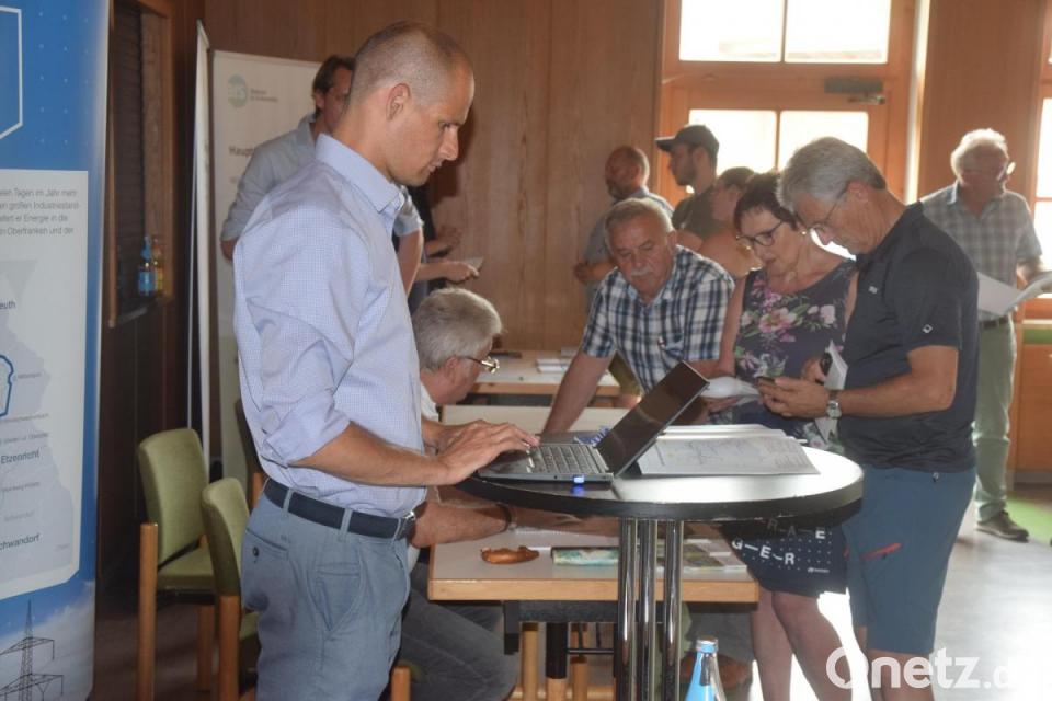 Zuerst stellten sich die Fachleute vor, bevor es an den einzelnen Stationen im Saal ins Detail ging. Torsten Grampp von Tennet erklärte an einer alles über den Süd-Ost-Link. Das "Jena-Geos-Ingenieurbüro" klärte über Bodenschutzmaßnahmen beim Bau von Stromleitungen auf. Zudem informierten Günter Stich und Boris Domzog (ehemalige Bürgermeister Floß und Störnstein) in Gesprächen über Möglichkeiten der regionalen Stromgewinnung und Bürgerbeteiligung bei der Bürger-Energiegenossenschaft "Zeno". Vertreter vom Kompetenzzentrum Elektromagnetische Felder (KEMF) vom Bundesamt für Strahlenschutz standen weiter für Fragen rund um den Gesundheitsschutz beim Netzausbau Rede und Antwort.