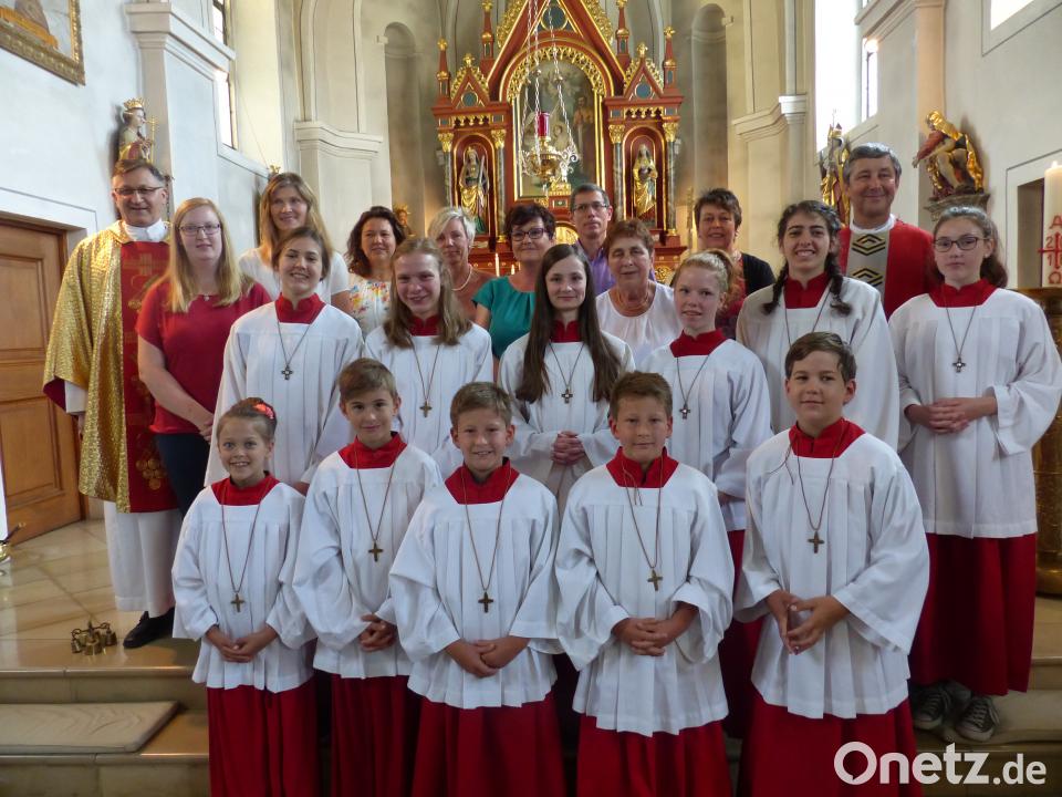 (sl) Beim Festgottesdienst der Kirchenpatronin unterstützte Professor Stanislaw Fel Pfarrer Adam Nieciecki. Der Kirchenchor mit Dirigent und Organist Josef Frischholz umrahmte die Messe. Es war nicht nur Patrozinium der Pfarrei St. Margareta sondern auch Pfarrfest, Ministrantenaufnahme und -beförderung sowie Verabschiedung langjähriger Pfarrgemeinderatsmitglieder. Pfarrer Nieciecki ging auf das Leben der Heiligen ein. Allerdings ist über sie wenig niedergeschrieben. "Heute geht es um den Weltmeisterschaftspokal für die Fußballer und das ist ihr höchstes Ziel. So ein Ziel kennt auch unser Glauben, die Gemeinschaft mit Gott", sagte der Geistliche. "Hier dient uns Margareta als Vorbild und so sollten wir schauen, was wir besser machen können." In der Predigt verurteilte er den blinden Aktionismus, der zu keinem Ziel führt. "Jeder Schritt zur Umkehr ist ein Neuanfang und führt zum Ziel mit Gottvertrauen." Die Lesung trug Lektorin Sieglinde Zitzmann vor, die auch die Fürbitten betete. Vor dem Schlußsegen rief Pfarrer Nieciecki die neuen Ministranten Viktoria Kappl, Wieselrieth, Sebastian Meißner, Lerau, die Zwillinge Lukas und Timo Wittmann aus Leuchtenberg sowie David Schwabl aus Unternankau auf. Er segnete ihre Kreuze und überreichte sie ihnen. Langgediente Ministranten musste der Priester verabschieden. Er dankte ihnen mit der Pfarrgemeineratssprecherin Corinna Kellner und überreichte die Dankurkunde an Linda Schwabl für sieben Jahre, Theresa Süß für acht Jahre, Helena Rupprecht für acht Jahre und "Ministrantenchefin" Sarah Schwabl für neun Jahre Dienst am Altar. Sabrina Süß und Talina Winter sind nun Oberministrantinnen. 20 Jahre gehörte Gretl Woppmann dem Pfarrgemeinderat an, zwölf Jahre Maria Bernhard, Christine Schieder, zu gleich Sprecherin, und Monika Winter, acht Jahre Monika Adam und Thomas Kick, vier Jahre Gertrud Renner und Sabine Schwabl.