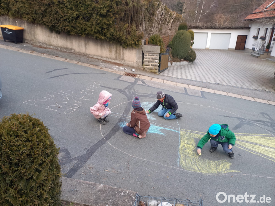 Schon die Kleinsten beschäftigen sich momentan mit dem Krieg gegen die Ukraine: Kinder im Kindergartenalter und Grundschüler haben in Leuchtenberg ihre Gedanken auf die Straße gebracht. So schrieben sie mit Straßenmalfarben „Putin muss aufhören“ und „gegen den Krieg“. Dazu malten sie die Nationalfarben der Ukraine mit auf die Straße. Mit der Aktion möchten die Buben und Mädchen auf ihre Art zum Frieden beitragen.