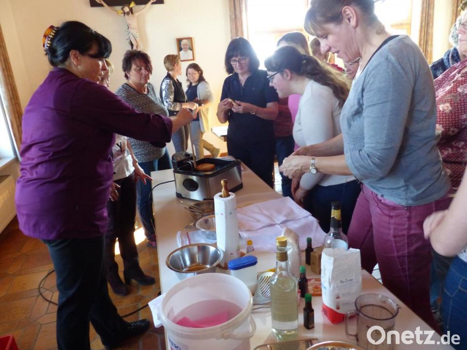 Es gibt Auszogne, Knienudeln, Küchln, Käichla und sogar evangelische Küchel. Die sollen angeblich nicht rund sondern eckig sein. Das Schmalzgebäck gehört nicht nur in der Oberpfalz zu allen Festen dazu. Hauswirtschaftsmeisterin Monika Schnupfhagn aus Moosbach war zu den Mitgliedern des Katholischen Frauenbund ins Pfarrheim nach Leuchtenberg gekommen. Sie zeigte den rund 30 Frauen, welche Zutaten und welche Handgriffe für das Backen nötig sind. Schnupfhagn stellte die Zutaten vor: Mehl, Zucker, Salz, Eier, Milch und das wichtigste, die Hefe, damit nach dem Vermischen alles aufgeht. Wichtig sei, so die Fachfrau, das Dampferl gehenzulassen, so geht der Teig dann besser auf, und wenn er fertig gebacken ist, hält das Gebäck länger frisch. Damit die Rohlinge, ob Küchel oder Krapfen, nicht so viel Fett aufsaugen, ist es wichtig, in den Teig Arrak zu geben. Viele versuchten zum ersten Mal, ein Küchel zu drehen und dann ins heiße Fett zu legen. Die jüngste Teilnehmerin war die 12-jährige Mandy, und sie legte selbst mit Hand an. Anschließend lud das KDFB-Vorsitzenden-Team Maria Winter, Claudia Rupprecht und Renate Kraus die Frauen bei Kaffee zum Verkosten der Festtagsgaben ein.
