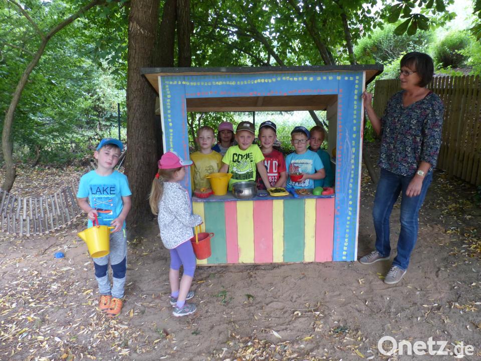 (sl) Nicht nur die kleinen Künstler sondern der ganze Kindergarten St. Johannes freut sich über die neue „Verkaufsbude für Kinder“. Jonas, Moritz, Max, Johanna, Katja, Leon, Matilda und Paul sowie einige aus der „kleinen Gruppe“ verzierten ihren neuen Verkaufsstand selbst. Vorher ist er von Günther Weiß aus Neudorf bei Luhe gefertigt worden. Die Kosten von 550 Euro hat der Elternbeirat gespendet. So ziert der bunte Stand den Garten. Jedes Kind will natürlich Verkäufer spielen und die wenigstens ihre Produkte einkaufen. Kindergartenleiterin Veronika Rupprecht ist selbst ganz stolz und berichtet, dass die Bude bereits beim Sommerfest als „Smoothi-Bar“ genutzt worden ist. Hier hatten die Kinder die Mixgetränke selbst zusammengestellt. Demnächst bekommen sie eine weitere Sachspende vom Elternbeirat mit Vorsitzender Karin Preßl, nämlich eine „Wasserstraße“, ein Spiel aus Holzrinnen im Wert von 350 Euro.