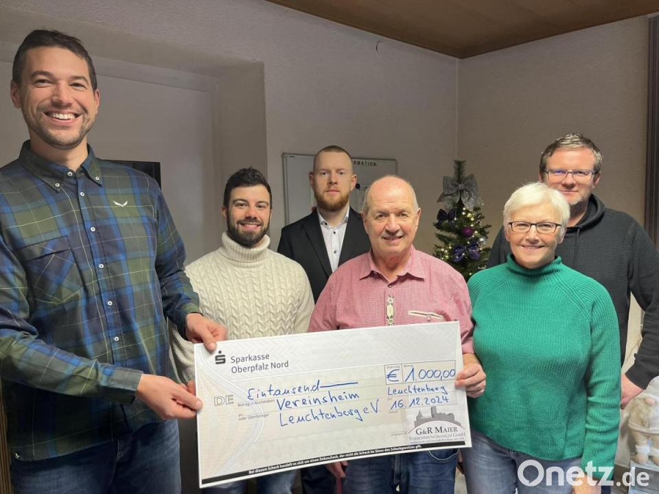 Auch dieses Jahr spendet die G & R Maier Versicherungsmakler GmbH in der Weihnachtszeit für einen guten Zweck. Am Montag übergaben Gerlinde und Raimund Maier zusammen mit ihrem Team 1000 Euro an die Vorsitzenden des neu gegründeten Vereins "Vereinsheim Leuchtenberg e.V.", wie das Unternehmen mitteilte. Dazu kamen Wolfgang Härtl, Matthias Eckert und Felix Leiß gerne in das Büro. Vereinsziel ist der Betrieb eines Vereinszentrums für alle Leuchtenberger und alle Vereine der Marktgemeinde. Es soll auch ein Treffpunkt für junge Familien mit Kindern sein.