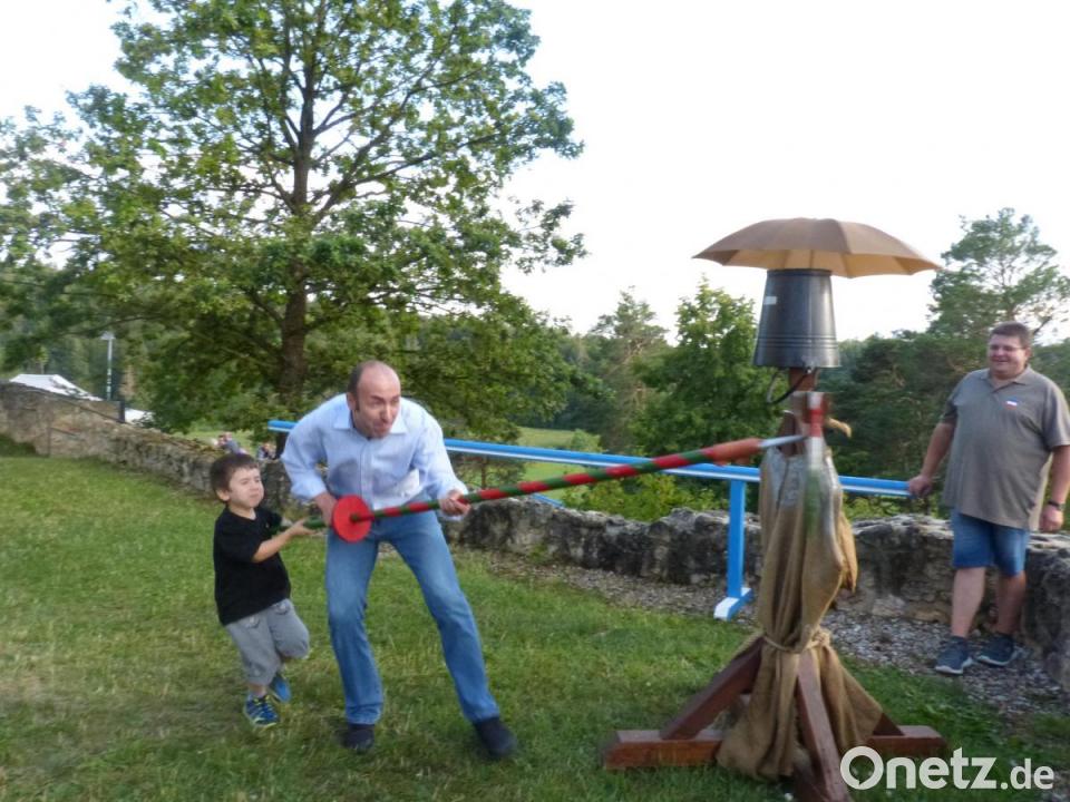 Die Familien lockte das vielfältige Programm für die Unterhaltung der Kinder an. Martina Dietrich und ihre Helferinnen zeigten dem Nachwuchs, wie aus porösen Holzstäbchen und einigen Zutaten eine Insektenunterkunft entsteht. Beim Ritterstechen war manchmal Unterstützung gefragt. Beim Buddeln kamen zwar keine Goldstücke, aber Bonbons ans Licht. Auch die erwachsenen Gäste kamen nicht zu kurz. Deftiges Brot aus dem Loos-Backofen mit Griebenschmalz, Schnittlauch oder Käse kam bestens an. Das freute auch Birgland-Bürgermeisterin Brigitte Bachmann, die als "Hausherrin" das Fest nicht versäumte. Sein besonderes Merkmal war die ruhig-gemütliche Unterhaltung, die ohne Musik und Grillschwaden auskommt. Und auch die Bereitschaft der Helfer vor Ort aus Högen trug zum guten Gelingen des Burgfestes bei. Ihnen und allen anderen Helfern galt der Dank des Vorsitzenden des Fördervereins, Richard Pilhöfer.