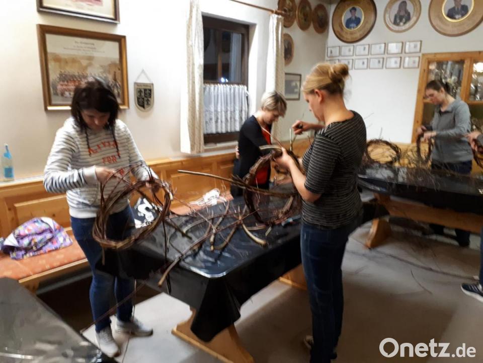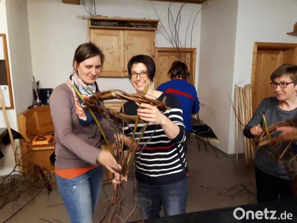 Die Teilnehmer bastelten unter der Anleitung von der Expertin einen Weidenkranz, ein Weidennest oder einen Weidengartenstecker. Am Ende konnte jedes Mitglied ihr selbst geflochtenes Schmuckstück mit nach Hause nehmen.