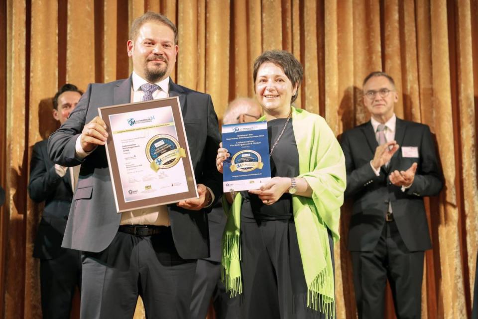 Große Freude beim Liebensteiner Kartonagenwerk: Ende Juni durften die Geschäftsführer Marion Forster und Bernhard Schön jun. den Bayerischen Mittelstandspreis 2024 in München entgegennehmen. EWIF Deutschland, das Europäische Wirtschaftsforum e.V., kürt jährlich zehn mittelständische Unternehmen aus ganz Bayern, die sich durch ihr Engagement in wirtschaftlichen und auch sozialen Projekten auszeichnen.