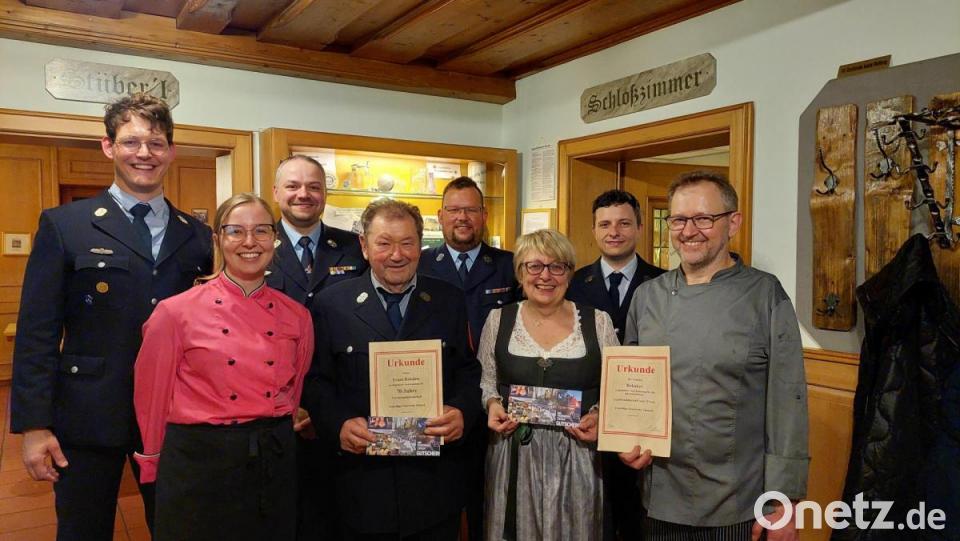 Im Rahmen einer „Kitchen-Party“ hatten die Lintacher Feuerwehr und die Gastwirtsfamilie Rehaber zum Letzten Abendmahl in ihren Gasthof eingeladen. „Heute Abend liegen Freud' und Leid nah beieinander. So wenig wir uns darüber freuen, dass unser letztes Wirtshaus im Dorf schließt, so sehr freuen wir uns, dieses Ende zumindest gebührend feiern zu können“, erklärte Vorsitzender Michael Weiß von der Feuerwehr eingangs. Dabei wolle man die Gelegenheit nutzen, sich offiziell bei der gastgebenden Familie Rehaber zu bedanken: „Egal ob privat oder im Rahmen von Veranstaltungen der Feuerwehr – wir alle haben hier unzählige Stunden verbracht, in denen wir Eure Gastfreundschaft genießen durften“, betonte Weiß. Als Anerkennung überreichte er eine Dankurkunde und die ersten Exemplare des neuen Feuerwehr-Lintach-Gutscheins an Wirtshauschef und Koch Stefan Rehaber sowie Seniorchef Franz Rehaber. „Die wollten wir eigentlich erst nächstes Jahr offiziell vorstellen, aber besondere Ereignisse erfordern besondere Maßnahmen“, stellte der Vorsitzende fest. Der Gutschein könne bei zahlreichen Betrieben im Dorf und in der Region eingelöst werden.