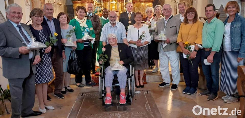 Weil wegen der Corona-Pandemie im vergangenen Jahr die Veranstaltung ausgefallen war, konnte Pfarrer Moses Gudapati insgesamt acht Ehepaare begrüßen. Pfarrgemeinderatssprecherin Waltraud Glöckner gratulierte den Paaren kleine Geschenke. Ihr Ehejubiläum feierten Josefa und Franz Rehaber (60 Jahre), Anna und Georg Schwab (60 Jahre), Helga und Josef Göbl (55 Jahre), Karin und Hans Knorr (55 Jahre), Resi und Helmut Fritsche (50 Jahre), Juliane und Georg Flierl (50 Jahre), Ottilie und Martin Wendl (50 Jahre) sowie Gertraud und Peter Heinrich (25 Jahre). Nach der Messe lud der Pfarrgemeinderat die Jubilare mit ihren Familien zu einem Gläschen Sekt vor der Pfarrkirche ein.