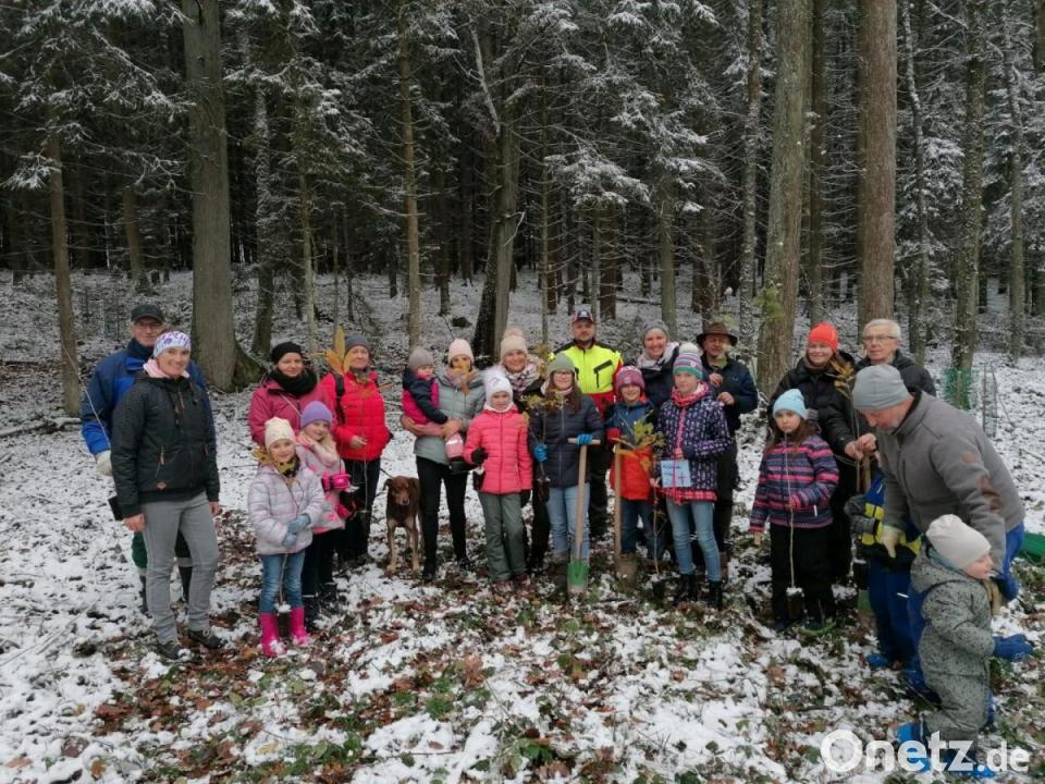 Zusammen mit Kirchenpfleger Franz Weiß hat der Pfarrgemeinderat Lintach eine Patenbaum-Pflanzaktion organisiert. Dabei wurden im Kirchenwald in Lintach junge, besondere Bäume, die zur Artenvielfalt und auch zum Klimaschutz beitragen, gesetzt: jeweils fünf Exemplare von den vier Baumarten Esskastanie, Eiche, Flatterulme und Baumhaßl. Mit großer Begeisterung waren die Kinder mit ihren Eltern und Großeltern dabei, als ihr Patenbaum gepflanzt wurde. Nach getaner Arbeit brachten die Kinder daran ein Namenschildchen an. Sie sind aufgefordert, das Wachsen ihres Patenbaumes zu begleiten.