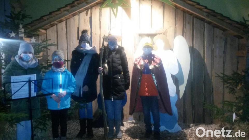 Die Aktion „Adventsfenster“, die wegen der Corona-Einschränkungen in diesem Jahr in einer etwas anderen Form ablief, übernahmen am zweiten Adventssonntag die Ministranten der Pfarrei Lintach. An der teilweise bereits aufgebauten Krippe vor der Pfarrkirche zeigten die Darsteller in der Gestalt eines Engels (Anna Koller), eines Hirten (Miriam Koller) und eines Königs (Louis Höcherl) die Spuren zur Krippe auf. „Wir haben unsere Spuren auf diesem Weg zusammen mit vielen anderen gelegt, weil wir zu Jesus in der Krippe unterwegs sind“, lautete das Thema dieser Aktion. Begleitet wurden die Kinder von der Flötengruppe mit Valentina Stockner und Emilia Schneider. Mit viel Applaus bedankten sich die Besucher am Schluss bei den Darstellern. Das nächste Adventsfenster gestaltet der Pfarrgemeinderat am dritten Adventssonntag in der Pfarrkirche in Lintach.