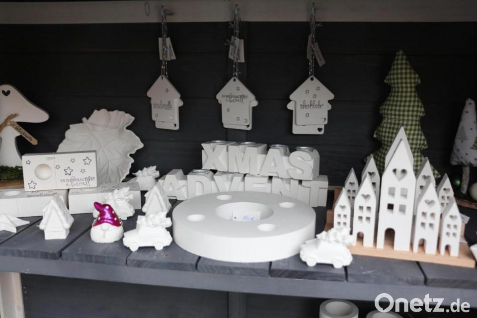 Daraus fertigt sie Geschenkartikel, Geschenkanhänger, Christbaumschmuck und Dekoartikel. Doch auch Kerzen mit Sinnsprüchen sind im Angebot, ebenso Adventskränze aus Raysin und Glückwunschkarten für alle Anlässe.
