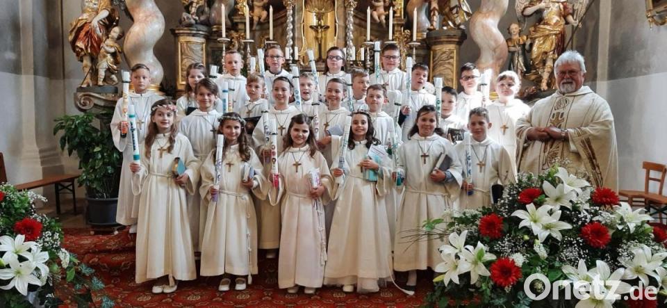 Pfarrer Pirner dankte den Tischmüttern Kerstin Kick, Elisabeth Sollfrank, Claudia Klaschka, Stefanie Lindner, Sonja Anzer, Sandra Hoffmann und Melanie Hecke, Sabine Kreische für ihren Einsatz mit Geschenken. Erstkommunion feierten aus Luhe Sophie Kick, Lena Kick, Basti Kleber, Leni Lehnert, Anton Lindner, Emilia Sollfrank und Max Tretter; aus Neudorf Anna Hofen, Emma Klaschka, Felix Lindner, Felicitas Post und Jannis Roll; aus Oberwildenau Emma Diertl, Jonas Hecke, Phil-David Hofmann, Niklas Kreische, Selina Krauß, Valentin Melchner, Finn Rockefeller, Philipp Scheidler, Zacharias Schrott, Leonie Simon und Finn Ziro.