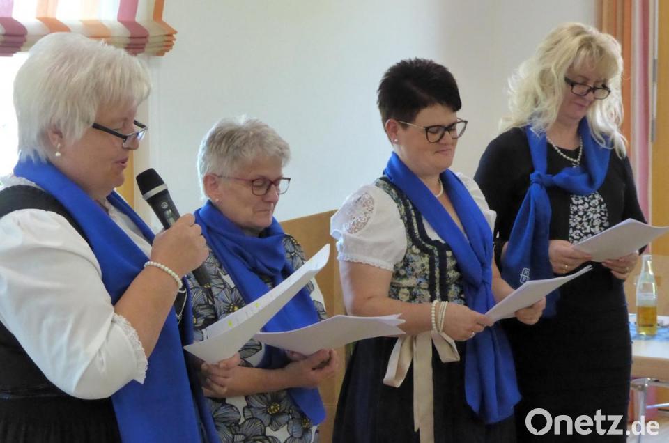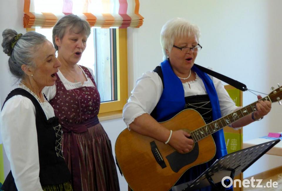 PGR-Sprecherin Ulrike Duschner bezeichnete den Frauenbund als Bereicherung für die Pfarrgemeinde. Bürgermeister Karlheinz Preißer überbrachte die Glückwünsche des Markts und erinnerte daran, dass Frauen erst vor 100 Jahren studieren und erst vor etwa 50 Jahren selbst Arbeitsverträge unterschreiben durften. Der Patenverein Oberwildenau überreichte ein Blumenkränzchen als Geschenk, ehe nach dem Lied „Vågelts Gott“ die Feierlichkeiten mit einem Mittagessen und einem gemütlichen Beisammensein bei Kaffee und Kuchen ausklangen. Musikalisch gab das „Trio Z’sammg’stimmt“ − das sind Rita Gleißner, die auch die Texte verfasst hatte, Resi Lorenz und Ulrike Schwab – mit Liedern wie „Då Frauenbund, der schaut zurück“ harmonisch den Ton des Nachmittags vor. Der „weltlichen“ Jubiläumsfeier im Pfarrheim war ein Gottesdienst mit gekonntem Dreigesang und Gitarrenbegleitung vorangegangen.