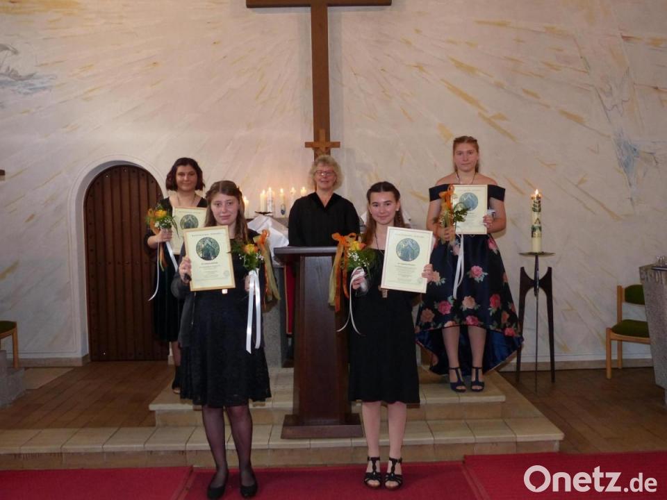 Religionspädagogin Gabi Mehlan wählte für den Gottesdienst in der Erlöserkirche „Du hast mich stark gemacht“ aus. Das Leben der Konfirmandinnen gleiche dem Liedertext. Eure Eltern haben Euch seit der Geburt begleitet und getragen, mit Euch Freud und Leid geteilt, so Mehlan. Als äußeres Zeichen der Aufnahme in die Kirchengemeinde wurde den jungen Damen, Jasmin Platow, Vanessa Schmidt, Mandy Kienert (Luhe) und Angelina Kimmich, eine Urkunde und ein Kreuz überreicht. Kirchenvorstand Stephan Schütz hieß die vier neuen vollwertigen Gemeindemitglieder willkommen.